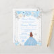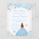 Este convite de aniversário de dezesseis anos de inverno elegante e glamoroso apresenta uma bela princesa com cabelos castanhos vermelhos e pele clara em um vestido azul de baile. O texto combina caligrafia manuscrita e fontes modernas sem serifa para um visual sofisticado e elegante. Os arranjos florais, flocos de neve e confetes prateados criam a combinação perfeita de rústico e chique.