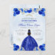 Clássico Marinho Azul Azul Dourado Brilhante Azul Tiara Coroa Princesa Floral Quinceañera Convite