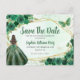 Cartão Postal Princesa Verde Floral Quinceañera Salve a Data