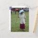 O professor de uma tradicional trupe de dança das raparigas Kadazan Dusun, que se apresentou durante o ano Tamu Besar Kota Belud em Sabah. Ela tem uma bengala para instruções - ou talvez até para punir?
