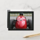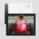 Um motorista de corrida de safra aperta o capacete.