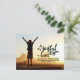 Cartão postal de citação inspiracional retrata a silhueta de um garoto pulando para alegria. Ele apresenta Bíblia Verse Proverbs 17:22, "Um coração alegre é um bom remédio" _