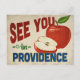 Um cartão postal encantador da viagens vintage Providence Rhode Island com uma adorável maçã vermelha, juntamente com um texto divertido no estilo retrô que diz, "Vemo-nos na Providência"
