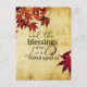 Cartaz de Ação de Graças Inspirativo retrata um galho de lindas folhas vermelhas do Maple Japonês com um fundo de papel pergaminho. Ele apresenta uma parte da Bíblia Verse Psalm 90:17, "E as bênçãos do Senhor dependeram de nós." A saudação traseira pode ser personalizada e o cartão usado em várias ocasiões.*
