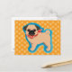 Cartão Postal Pug bonito com cachecol