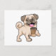 Cartão Postal Pug com Café para viagem