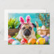 Cartão Postal Pug Dressed as Easter Bunny with Eggs