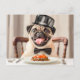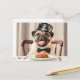 Cartão Postal Pug Wearing Hat Sitting at Table