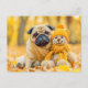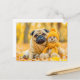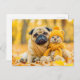 Cartão Postal Pug with Plush Toy in Autumn Forest