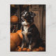 Uma bela Borda Collie se posiciona com as abóboras da arte gerada pela IA
