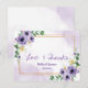 Thank your guests in elegant style with this purple and white floral wedding thank you card featuring a classic gold frame. Soft watercolor florals paired with a refined gold border create a timeless and sophisticated look, perfect for formal weddings and romantic celebrations. Personalize with your names and message for a coordinated wedding thank you card that complements your floral stationery suite.