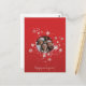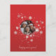 Uma forma excelente de celebrar o Natal ou o Ano Novo é enviar seus desejos com este elegante design de flocos de neve em fundo vermelho. Adicione sua foto de família, mude sua mensagem e envie o cartão para aqueles que você ama!