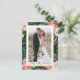 Elegante Cartão de Agradecimento de Foto de Casamento com Flores de Inverno em Aquarela e Folhagens para Noiva e Noivo inclui poinsétia vermelha, rosas brancas, frutos de azevinho e folhagem botânica. Moldura Dourada.