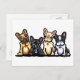 A partir da ilustração original de tinta e lápis colorido de Andie de 4 cores dos Bulldog Franceses: falso, preto, creme e preto/branco. Excelente para amantes franceses.