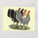 Gamefowl são criados em muitas cores bonitas e interessantes, como mostram estas quatro senhoras. Os galos são lavados, mas as galinhas apresentam frequentemente padrões e marcações intrincadas.