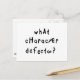 As palavras "que Defeito de Caráter" em roupas, acessórios e artigos de presente trarão um sorriso para qualquer um em um programa de 12 passos. Por vezes é duro ver os nossos defeitos de caráter, mas se trabalharmos no programa ganhamos uma nova visão! Diversão em reuniões, convenções, atividades para qualquer tipo de bolsa, AA, NA, Al-anon ou outros programas em 12 etapas.