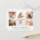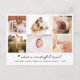 Que maravilha! Este design moderno é composto por uma simples tipografia sans serif que é leve e arejada e por uma escrita manual moderna. Adicione suas seis fotos da família favoritas e edite o texto personalizado para tornar este obrigado de chá de fraldas minimalista e elegante que você faz do postal exclusivo! Perfeito por apresentar seu recém-nascido ao mundo! Seu amigo e família ficarão encantados e apreciarão este cartão postal por anos.