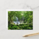 Cascata escondida em uma floresta chuvosa, com os raios do sol pegando a névoa. Escondida nas montanhas Appalachian, na Carolina do Norte.