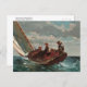 Um cartão-postal de belas artes com a pintura de Winslow Homer, artista norte-americano (1876) do movimento realismo Breezing (1873-1876), também conhecido como Fair Wind. Um grupo de garotos num veleiro no oceano chamado Gloucester, deixando vento nas velas.