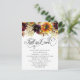 Belo arranjo de flores de outono decora o topo deste cartão postal de chá de panela. O buquê floral do outono inclui um girassol amarelo, rosa de burlu profundo e uma hidrangea branca. As folhas caídas rodeiam-nas. Seguem-se os detalhes do chá de panela. A parte de trás do cartão tem outro arranjo floral no topo. Em seguida, um local para adicionar uma mensagem pré-impressa. Todo o texto pode ser editado. Este cartão-postal de chá de panela faz parte da coleção Girassol e Borgonha. Ele contém os itens necessários para o seu chá de panela e suprimentos de festas.