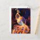 um design colorido de um híbrido de pavão fênix em cor laranja clara e azul sobre fundo negro como cartão-postal decorativo