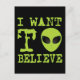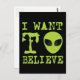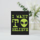 Texto verde e ilustração alienígena do popular meme da internet: "Quero Acreditar". Personalize-o para torná-lo seu, alterando a cor de fundo ou o seu próprio texto.