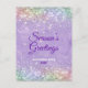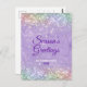 Lilac púrpura púrpura flameda iridescente bonita brilha no Natal de ano novo saudando cartão postal. Celebre a estação com este design glitérico de na moda chic, é simples, fácil, mas moderno e festivo. Ele é totalmente personalizável e personalizado com suas próprias mensagens de saudação. Este design também pode ser transferido para qualquer produto do zazzle. Adicione seu endereço de devolução para facilitar a correspondência. Perfeito por enviar seus desejos de férias para a família e amigos. NOTA: Estes são gráficos impressos - sem brilho real, joias ou peças levantadas
