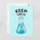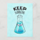 Cartão-postal de química bonita para mulheres em ciência com um personagem de frasco nerd sorridente com óculos e o texto engraçado "Manter borbulhante".