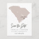 Este viagem guardar o cartão postal apresenta um mapa embaçado da Carolina do Sul e suporte a cartão postal. Altere facilmente as cores e mova o coração para realçar seu destino. Edite o texto *mais* para corresponder às suas necessidades e adicione facilmente uma mensagem especial ao verso do convite.
