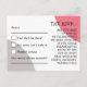 Se você está atrás de uma divertida e informal busca pela sua papelaria de casamento, você está coberto! O cartão-postal RSVP é uma tipografia divertida com formas abstrato em cor-de-rosa e cinzas em dois cantos e caixas opostos para facilitar a adição de suas respostas por seus destinatários. Personalize facilmente o seu nome e endereço no verso, para que seja fácil para os seus destinatários postar-lhe. Todas as palavras são facilmente personalizadas e você pode alterar a fonte e a cor, se desejar, por meio da opção Clique para personalizar mais.