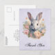 Cartão Postal Rabbit Surrounded by Pastel Flowers Cute Thank You