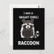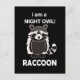 Cartão Postal Raccoon, sou uma Coruja Noite Engraçado Raccoon