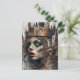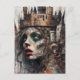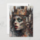 Uma mulher linda com um castelo na cabeça e alguns elementos macabros como crânios na cena