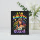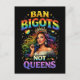 Uma rainha radiante de cabelos arco-íris em trajes cintilantes brilha sob um ousado slogan de orgulho celebrando identidade, força e autoexpressão.