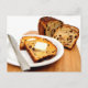 Fatias de pão de canela-de-passina com fatias dispostas mostrando o detalhe na fatia incluindo as passas