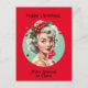 Cartão de Natal retrô com a garota de alfinete dos anos 50 em bagas ocas. Todo texto é editável.