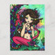 Cartão Postal Rapariga de Arte de Fantasia Sereia Panda Asiática