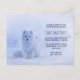 Um postal de convite de festas de Natal com uma fotografia de uma raposa ártica branca. Uma paisagem de neve invertida rodeia esta criatura encantadora.
