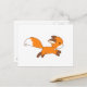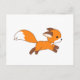 Um pequeno kit de raposa de desenho animado com orelhas grandes e cauda arbustiva está correndo rápido.