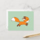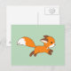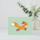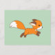 Um pequeno kit de raposa de desenho animado com orelhas grandes e cauda arbustiva está correndo rápido.