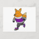 Cartão Postal Raposa no patinamento no gelo com patins e óculos