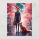 Uma bela raposa vermelha com uma pasta caminhando por um caminho com cerejeiras floridas engraçadas IA geraram arte