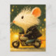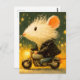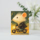 Cartão Postal Rato Branco Adorável Pilotando uma Motocicleta