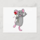 Cartão Postal Rato com Flor de Rosa
