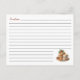 Esta é a estação para a reunião familiar e trocas de biscoitos. Por que não pegar este elegante cartão de receitas de troca de cookies de Natal e juntar a receita favorita antes de esquecer! Este cartão de receitas de natal de dois lados apresenta uma impressionante e vibrante aquarela de bolachas de Natal com café/chocolate quente, ao longo de uma redação engraçada e caprichosa de "Receita", "Ingredientes" e "Direções". Você não precisa personalizá-lo — você só precisa encomendá-lo. No entanto, se quiser personalizar o cartão de receita, pode fazê-lo. Note: Os textos elegantes do roteiro de caligrafia "Receita", "Ingredientes" e "Direções", bem como os biscoitos de Natal e trabalho de arte gráfico de café/chocolate quente e seus elementos juntamente com outros elementos como as linhas não podem ser alterados, apagados ou movidos. Eles estão consertados.