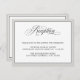 Um cartão de recepção elegante e simples para fornecer suas informações de recepção de casamento aos convidados de casamento, este design apresenta um belo texto de roteiro de caligrafia com a coordenação de digitação dos detalhes. Uma cinza de prata enquadra este cartão que se coordena com um conjunto de produtos de casamento.