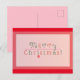 The Christmas postcard showcases vibrant typography of "Merry Christmas!" paired with a cheerful hanging ornament. Blending traditional charm with a modern, elegant touch, this festive holiday card shines in bold red and soft gum pink tones!