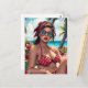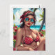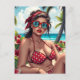 Cartão Postal Red Bikini, óculos de sol e mulher Bandana