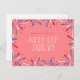 Envie uma vibrante alegria de férias com este cartão postal festivo de 4 de julho, entupindo com fogos de artifício vermelhos, brancos e azuis em um fundo vermelho-coral ousado. O layout moderno e a elegante tipografia branca dão a este cartão um talento na moda e divertido. Perfeito por celebrar o Dia da Independência com amigos e entes queridos perto ou longe. Quer você esteja jogando uma festa ou compartilhando desejos patrióticos, este cartão-postal adiciona um toque brilhante e comemorativo à sua mensagem.
