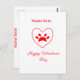 Cartão Postal Red heart dog cat paw happy Valentine's day name